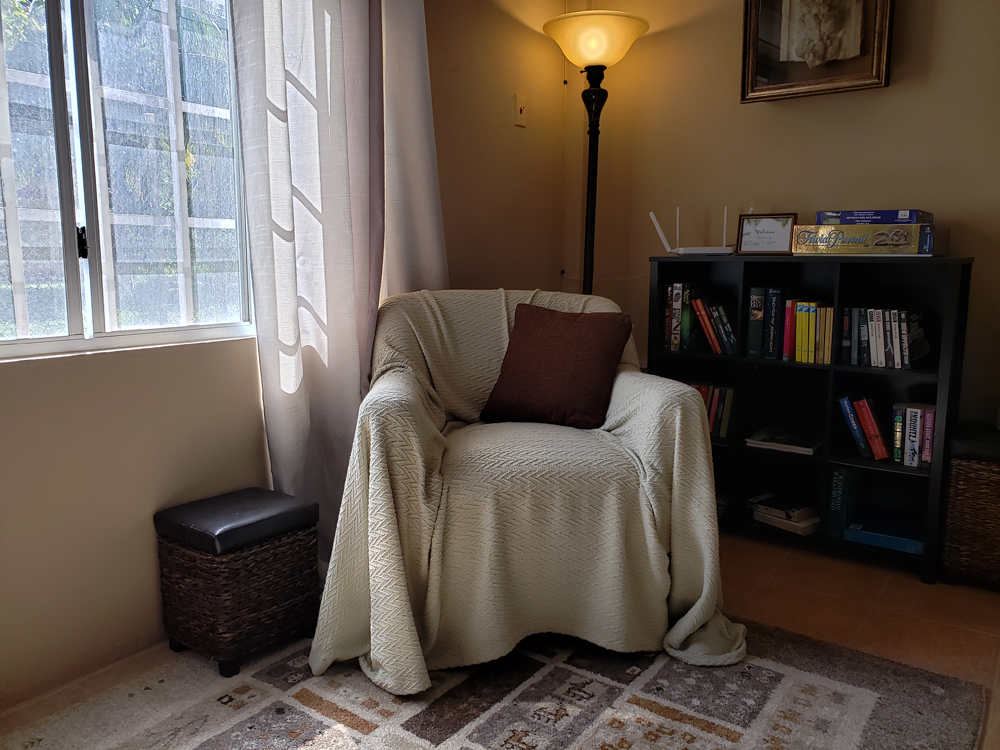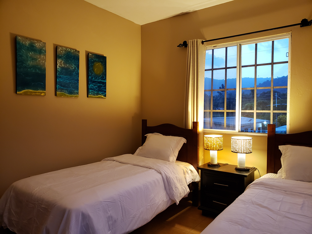 01-Welcome to Green Space02-Master Bedroom with Queen Bed03-Master Bedroom Sitting Area04-Ground Floor Bedroom with Queen Bed05-Bedroom with Twin Beds06-Dining Room07-Living & Media Room08-Reading Nook in Living Room09-Kitchen & Dining Table10-Kitchen11-Master Bedroom Balcony12-Green Space Porch13-Garden View from Green Space14-Sunset from Green Space15-Moonrise Over Northern Range16-Mountain View17-Porch at Night18-Porch Flowers19-Green Market20-La Venezuela Statue21-Maracas Bay Beach